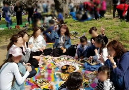紙コップのビールの中に散った桜の花びらが入って綺麗でした♡